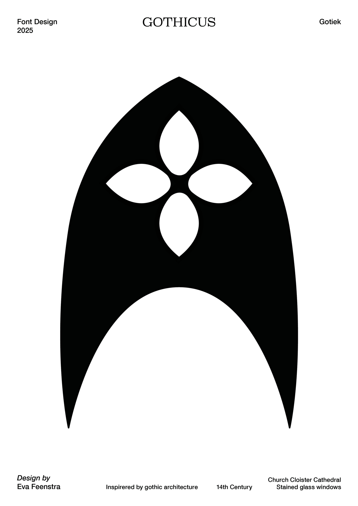 Gothicus is a font inspired by gothic architecture. I've taken shapes seen in churches, cloisters and cathedrals from the 14th century. Especially the windows from this architectural movement have always caught my eye, so it was about time to really study these shapes and create something with them.
